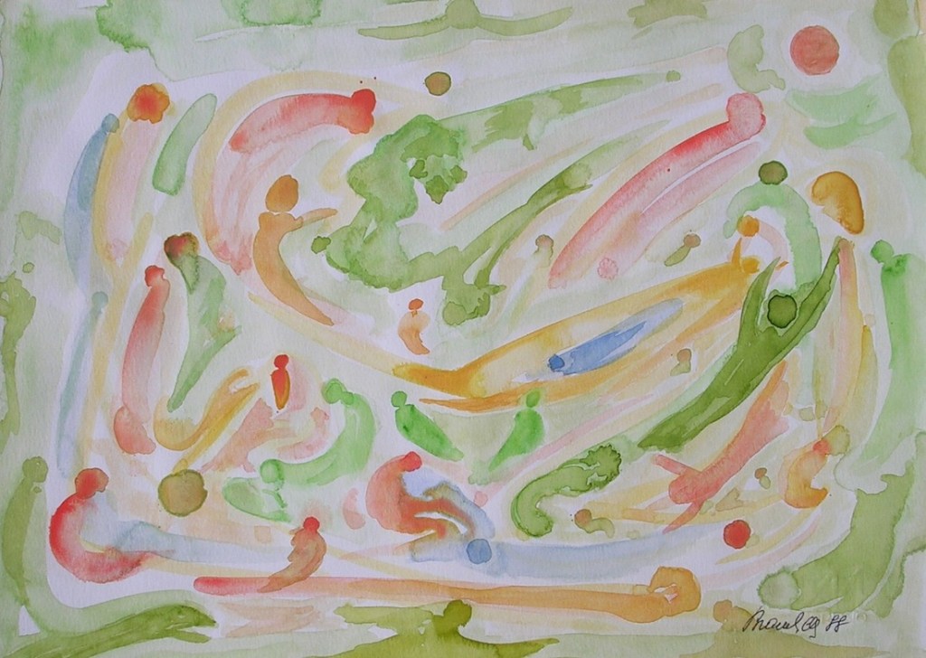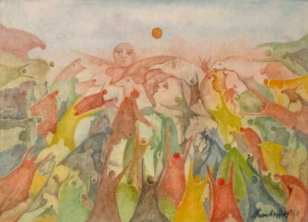 Figure imploranti – acquarello su carta, 1988, 25×35 cm