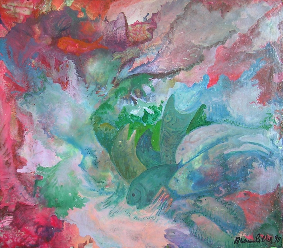 Fondo marino II – olio su tela, 1990, 48×68 cm